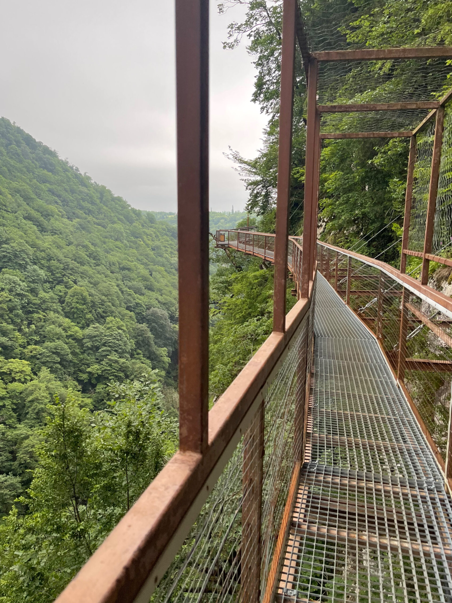 Spacer w koronach wysokich drzew nad kanionem Okatse to wspaniałe przeżycie, które u osób bojących się wysokości może wywołać niemały dreszczyk. Dla nas były to niezapomniane wrażenie.