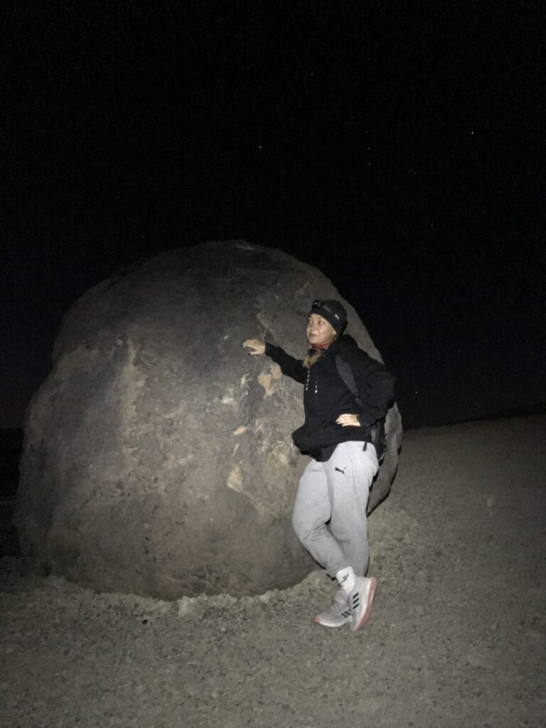 Wędrujemy tak, żwawo i radośnie pośród nocy, aż naszym oczom ukazują się one – Jaja Teide „Los Huevos Del Teide”! Ogromne gazy, kształtne, okrągłe, ciemno grafitowe kule. Te niezwykłe formacje, ukształtowały się na zasadzie „kuli śnieżnej” podczas wybuchu wulkanu i jest to w rzeczywistości zastygnięta lawa w postaci idealnie gładkich, ogromnych kul. Wyglądają imponująco, robimy pamiątkowe zdjęcie i ruszamy dalej.