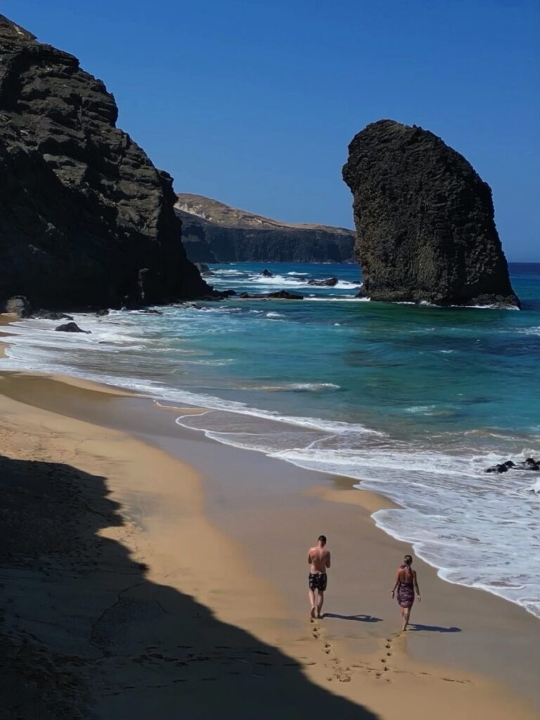 Aby poznać prawdziwe piękno plaży, warto wybrać się na długi spacer wzdłuż wybrzeża do bajecznego Roque Del Moro – dużego monolitu skalnego, który wyrasta z oceanu wznosząc się nad turkusową wodą, zalewającą złoty pasek.